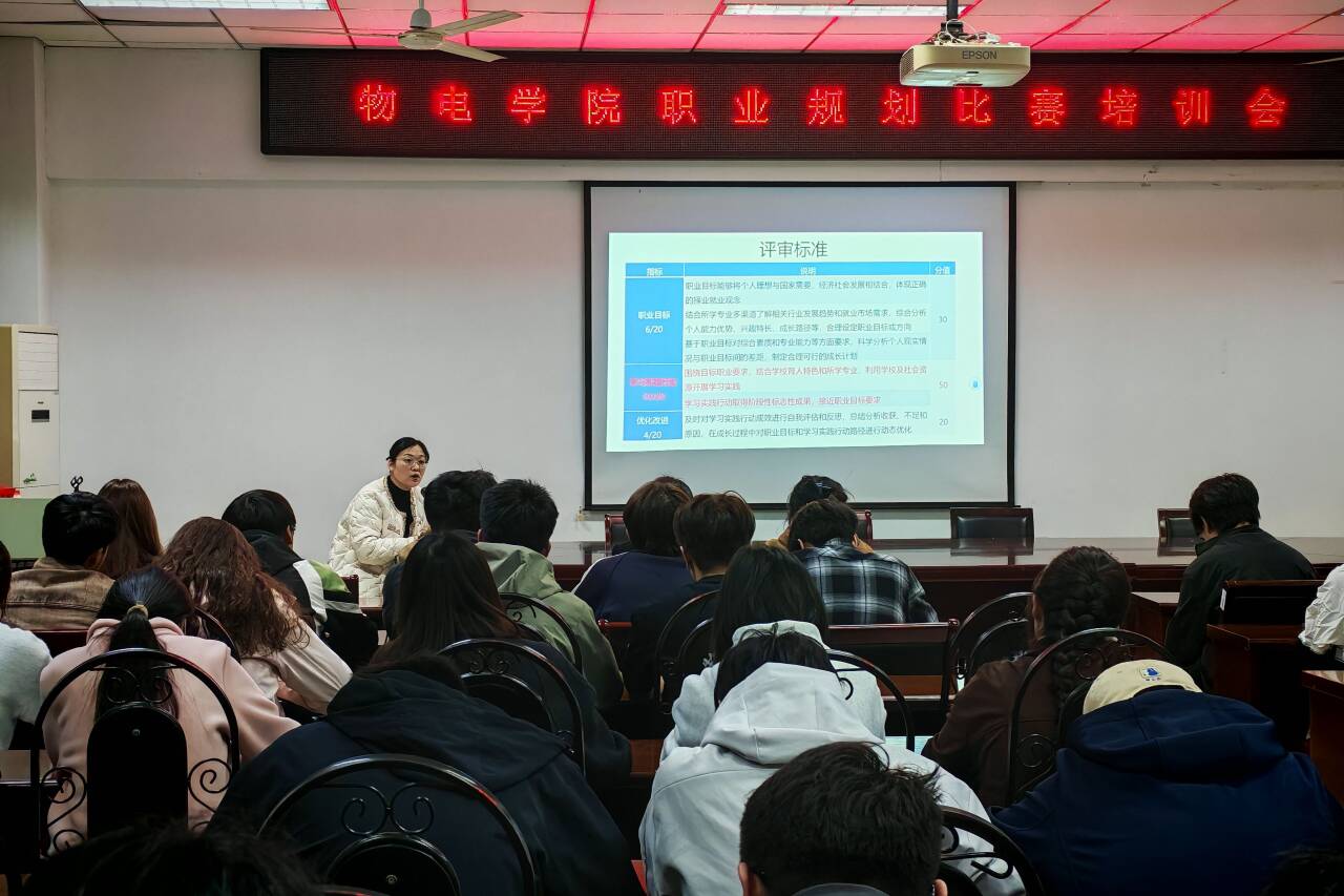 此次培训会为学生厘清了参赛思路、规范了作品标准,有效提升了学生的职业规划能力与赛事竞争力。物电学院将持续跟进赛事全流程,通过专项辅导指导学生精准规划职业目标与发展路径,精心打磨参赛作品,提升综合素养,助力物电学子在职业规划大赛中斩获佳绩。