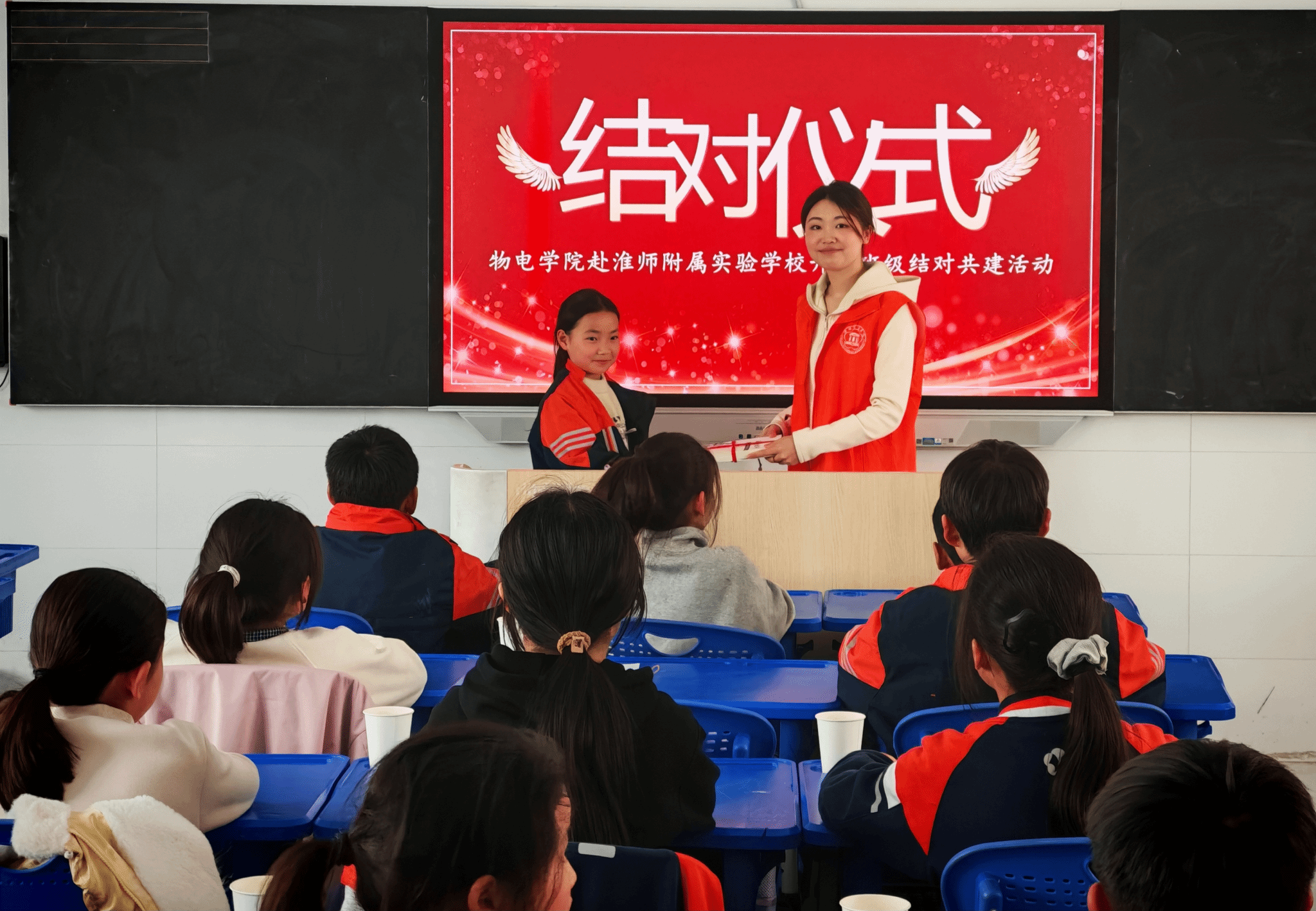 淮师新闻网4月15日电(记者 金子祺 辜莹莹 周子暄)4月14日,淮师物电学院与淮师附属实验学校开展“梦想引擎 成长计划”大手拉小手班级结对活动,在实践中传承周恩来崇高精神风范,点亮科学梦想。