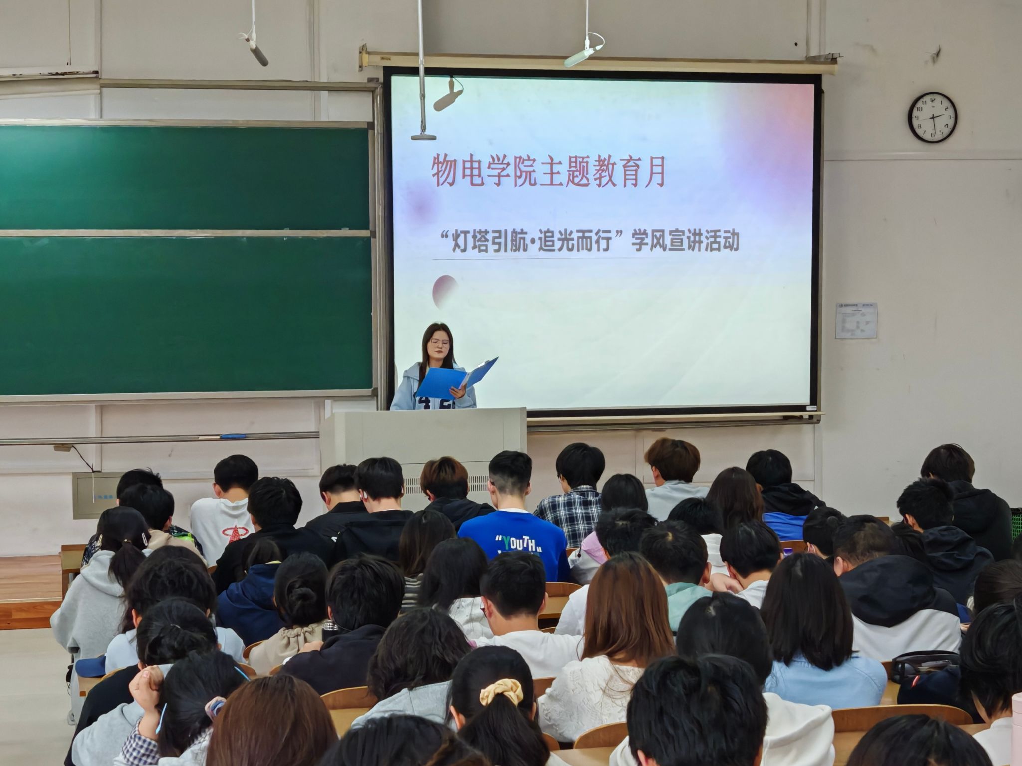淮师新闻网4月15日电(记者 张宣 张博闻 宋逯豪)为深入推进学风建设,帮助学生树立正确的学习观念、养成良好的学习习惯,4月15日下午,物电学院在理工南楼西阶101室举办“灯塔引航,追光而行”学风建设主题宣讲会。