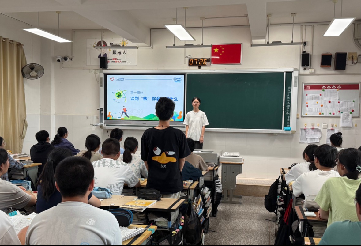 宣讲团走进江苏省白蒲高级中学、如东县实验中学,以“生活中的核辐射”为主题开展宣讲。志愿者从日常辐射现象切入,以“铀的‘三生三世’”为叙事线索,搭配趣味互动游戏与直观简笔画,通俗解读铀矿加工、核电站工作原理等专业知识,将晦涩的核科学知识转化为可触可感的认知内容。此次宣讲搭建起青少年喜闻乐见的科学沟通桥梁,不仅让学子读懂核技术的能量与价值,更在心中播下尊重科学、热爱探索的种子,让科学精神在传承中生生不息。