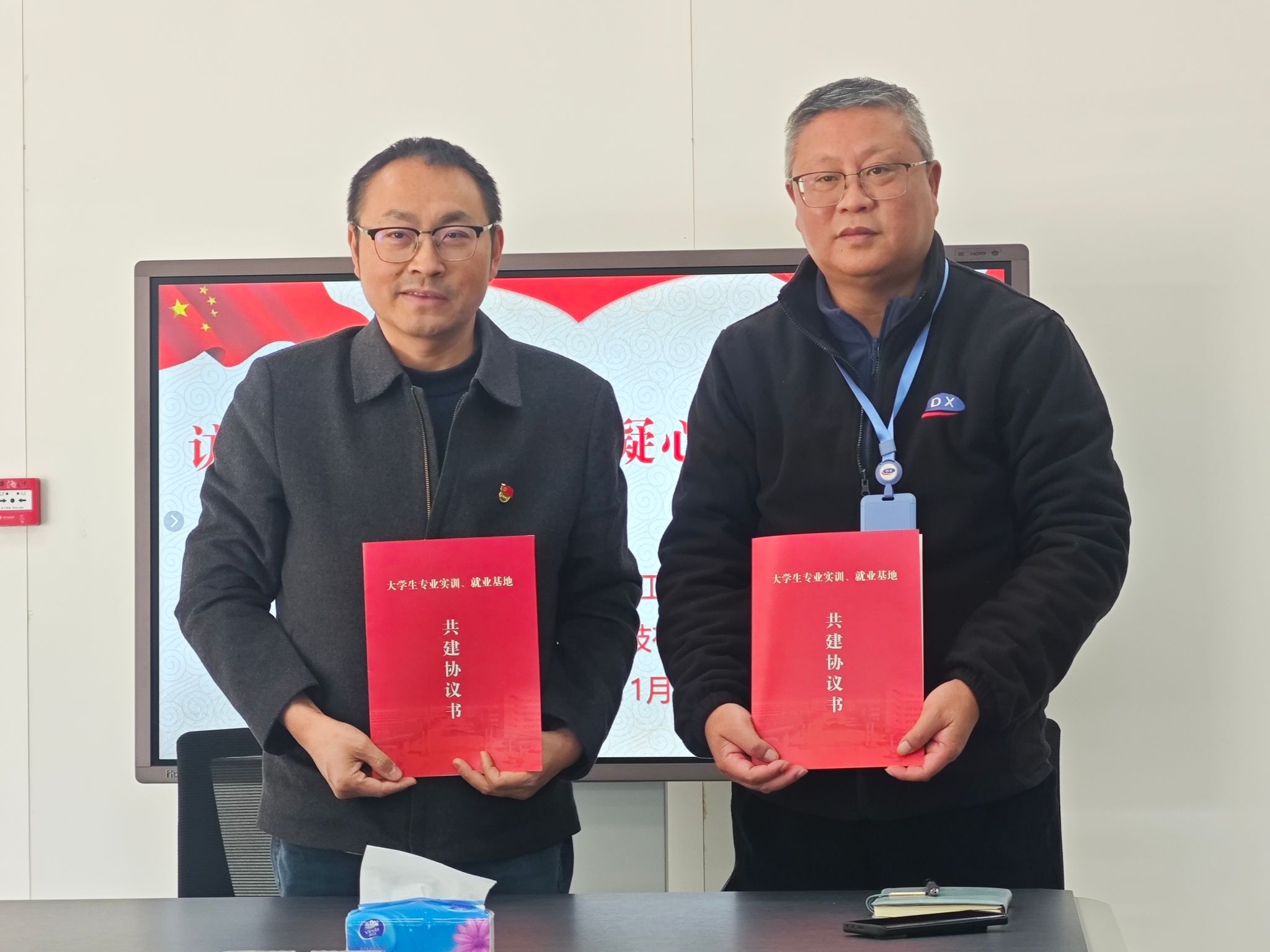 随后,双方移步会议室,对加强校企合作、人才培育、实习实践等方面开展深入探讨,从而推动毕业生就业与人才培养的有机联动,促进人才供需的有效对接。学院党委书记刘仁明和张平副总经理代表双方签订大学生专业实训、就业基地共建协议书,旨在为学生提供更多的实习机会与就业岗位,同时也为企业注入了新鲜的血液。